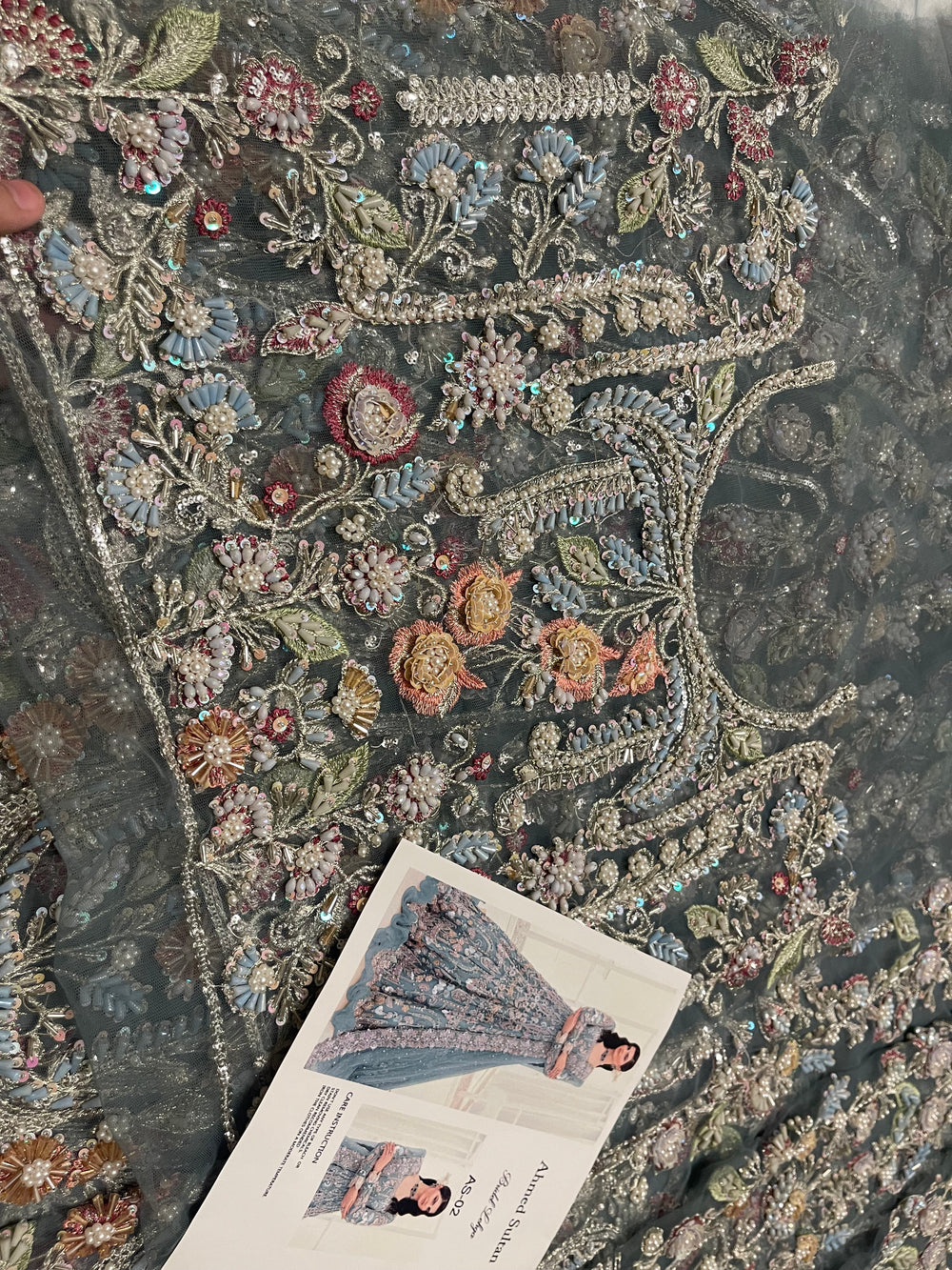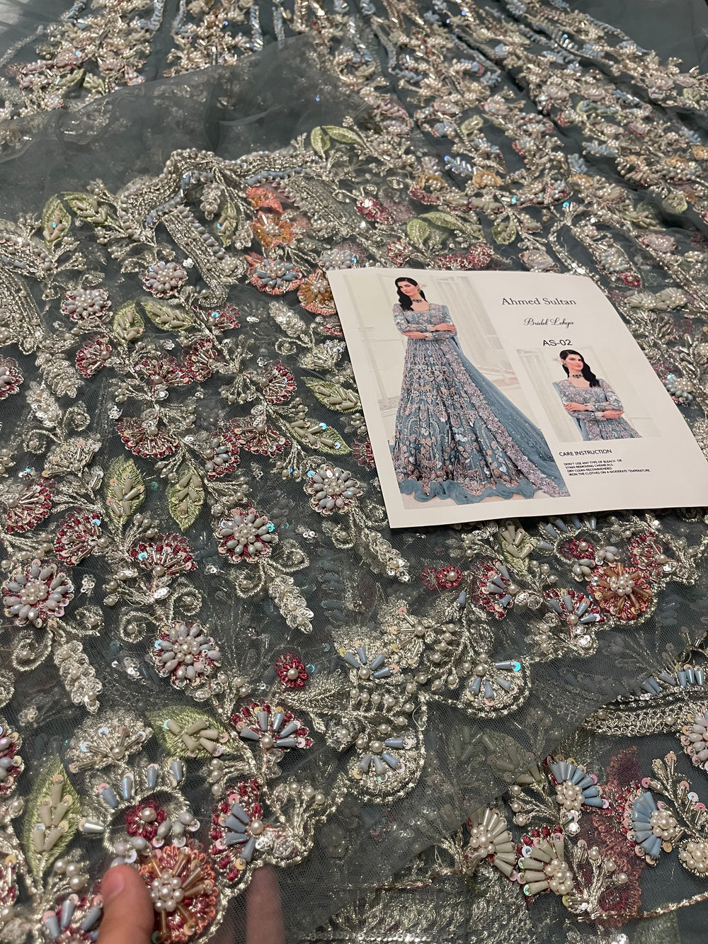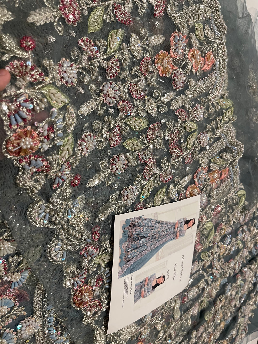 Orchid radiates the charm of a harmonious color palette with the artistic blend of accents of rose pink, dull yellow, and heavy detailing of sequenced handwork on a sheer canvas.