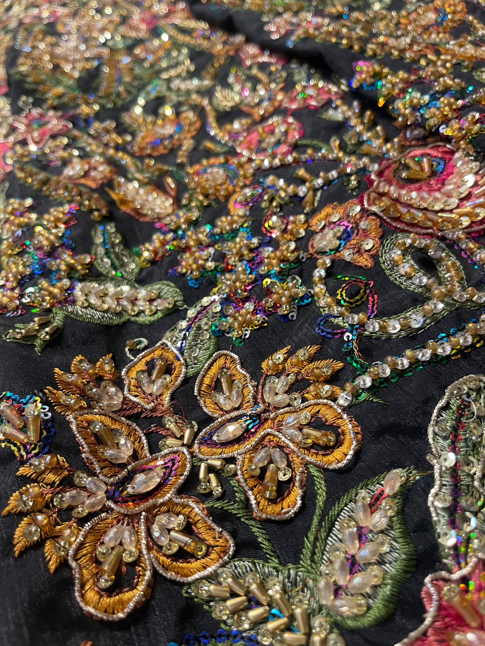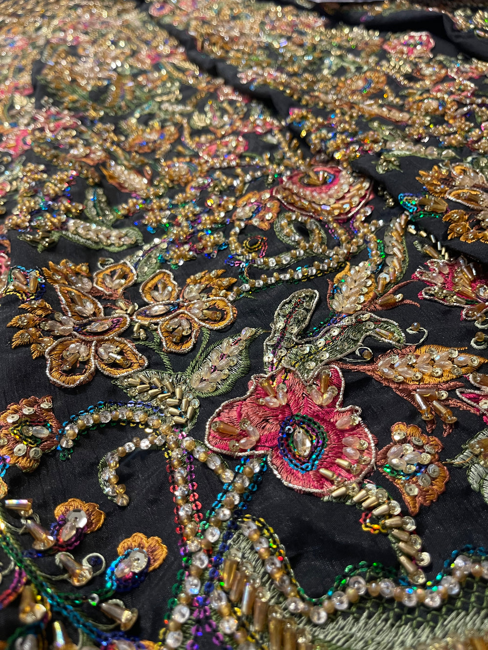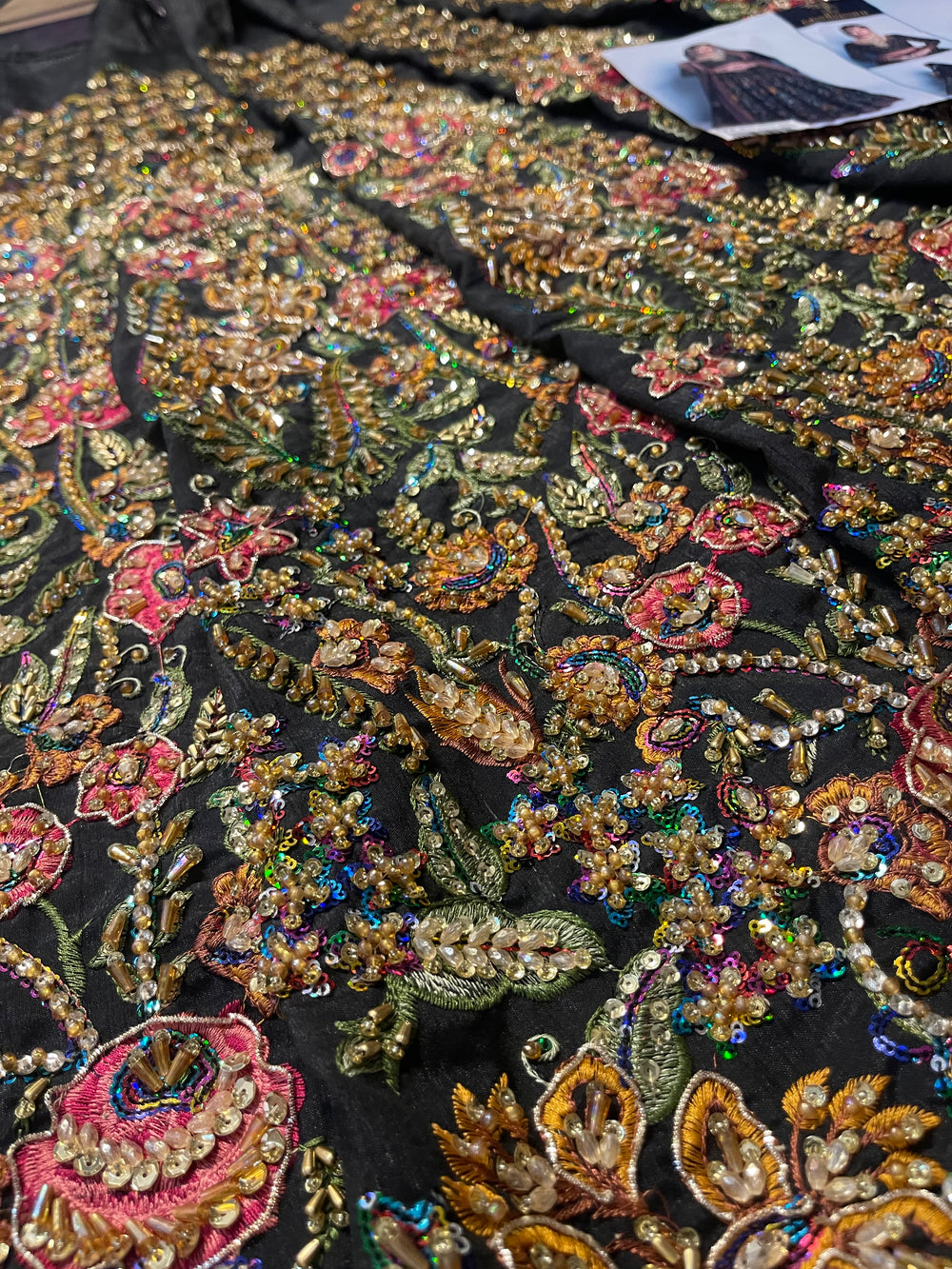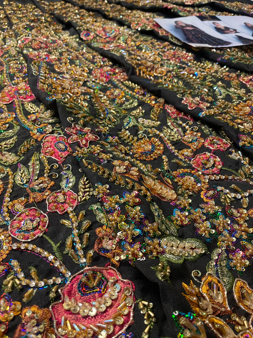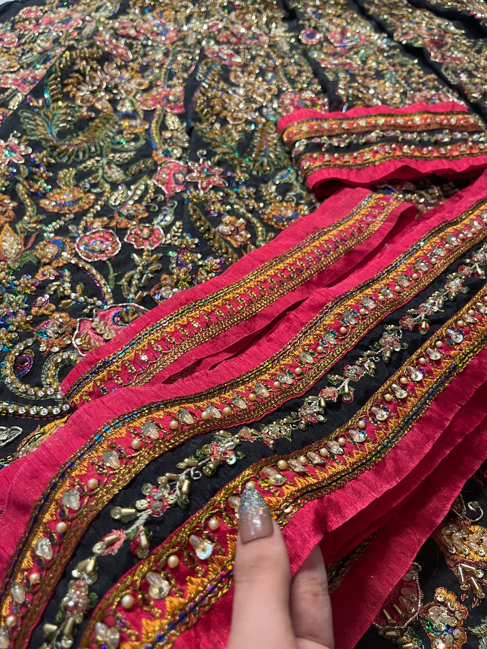 A striking ode to couture artistry, our inspired Naushayz ensemble captures the bold elegance and dramatic charm of the original Fahad Hussayn creation. Designed in a rich, statement black canvas, the outfit is adorned with intricate artisanal embellishments that add depth, vibrancy, and a touch of regal glamour.