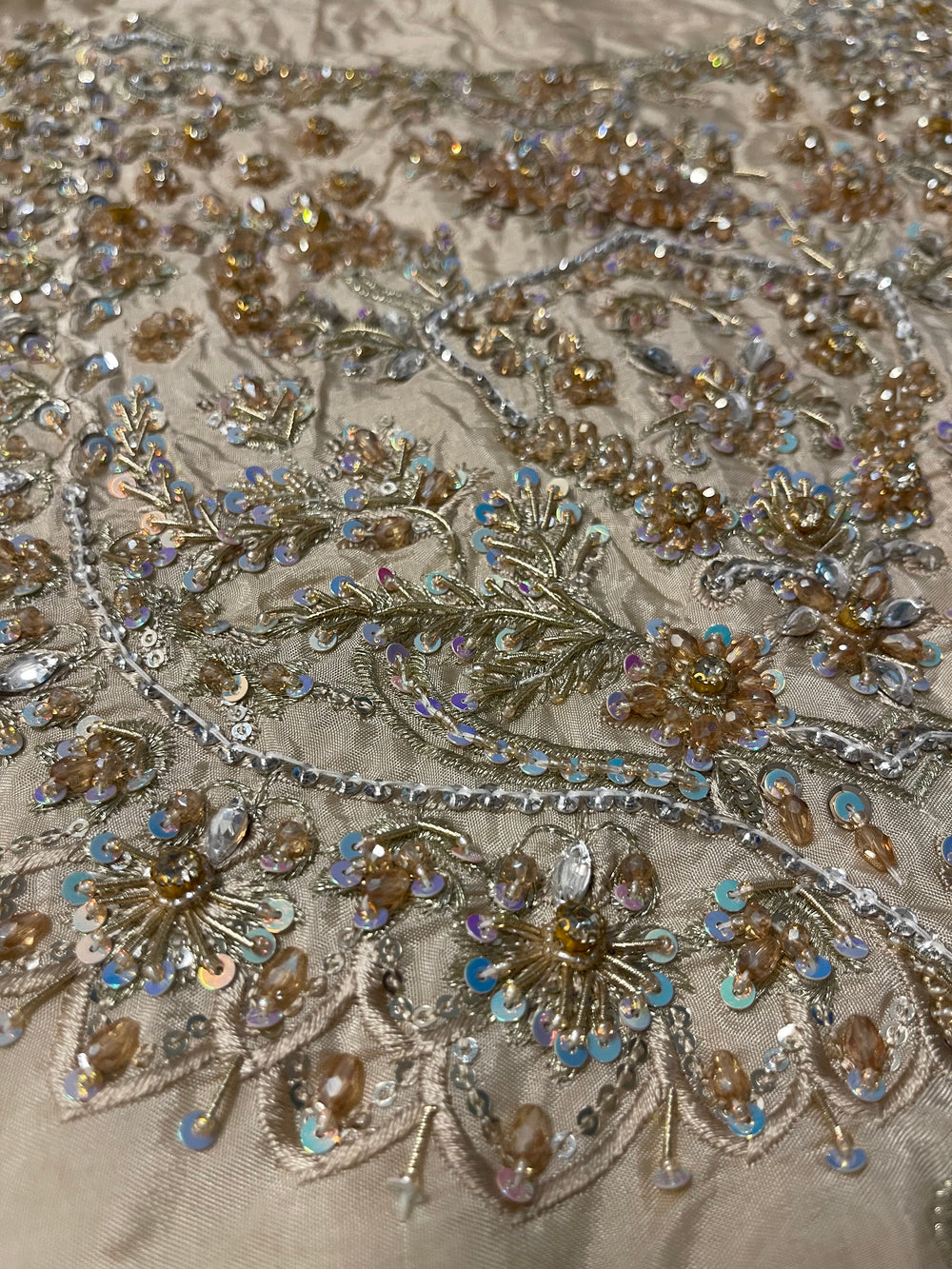 Devina is a dream in ivory — adorned with intricate handwork, paired with a regal dupatta, and finished with a statement gharara. A classic ensemble that whispers sophistication at every glance.