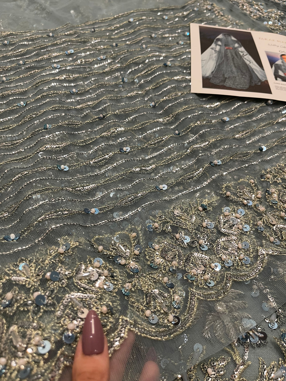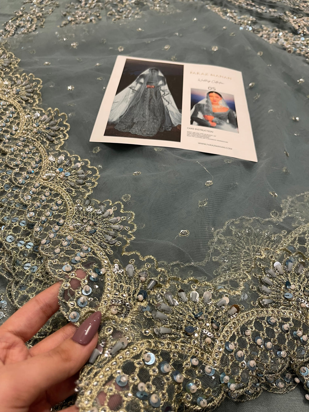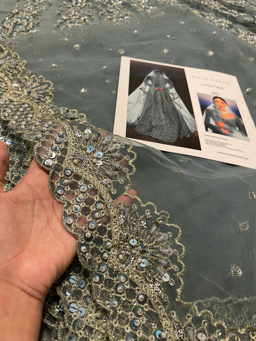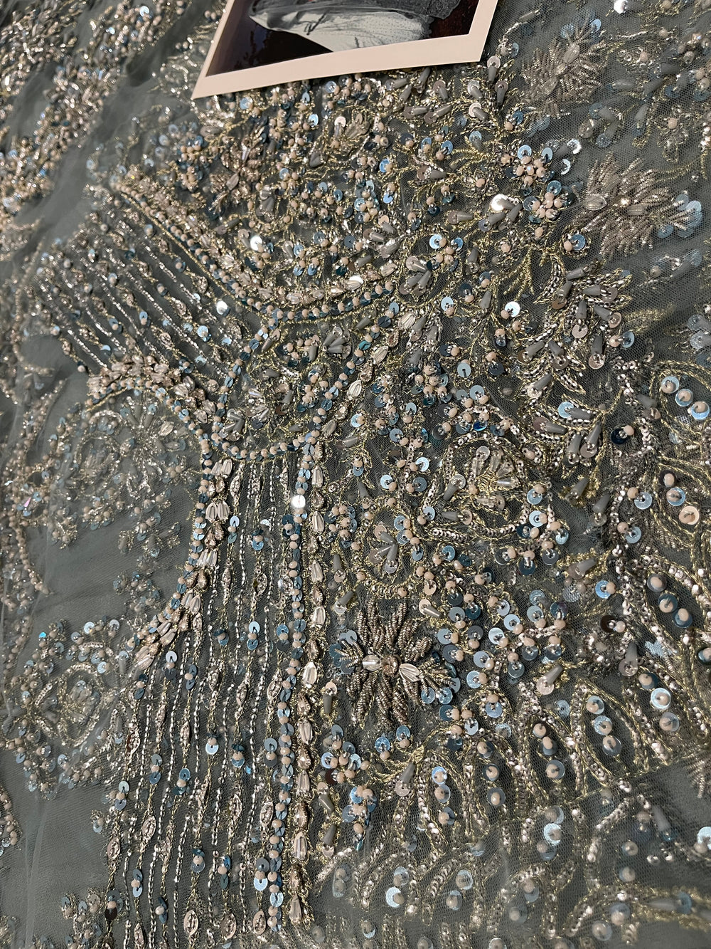 A masterfully handcrafted ensemble inspired by the timeless elegance of Faraz Manan’s design philosophy. This bespoke piece is brought to life in a uniquely curated shade, featuring an intricate tapestry of floral and vine motifs. Every inch is adorned with delicate hand embroidery — shimmering sequins, pearls, crystal beads, and metallic threadwork — woven together to create a luxurious, ethereal finish. A true celebration of craftsmanship and couture, this outfit blends traditional artistry with modern refinement, designed for those who appreciate detail, elegance, and individuality.
