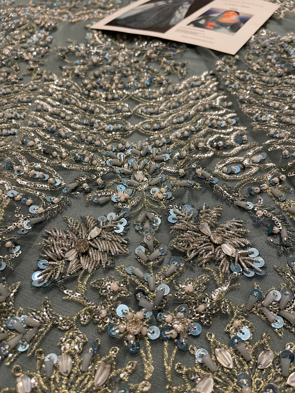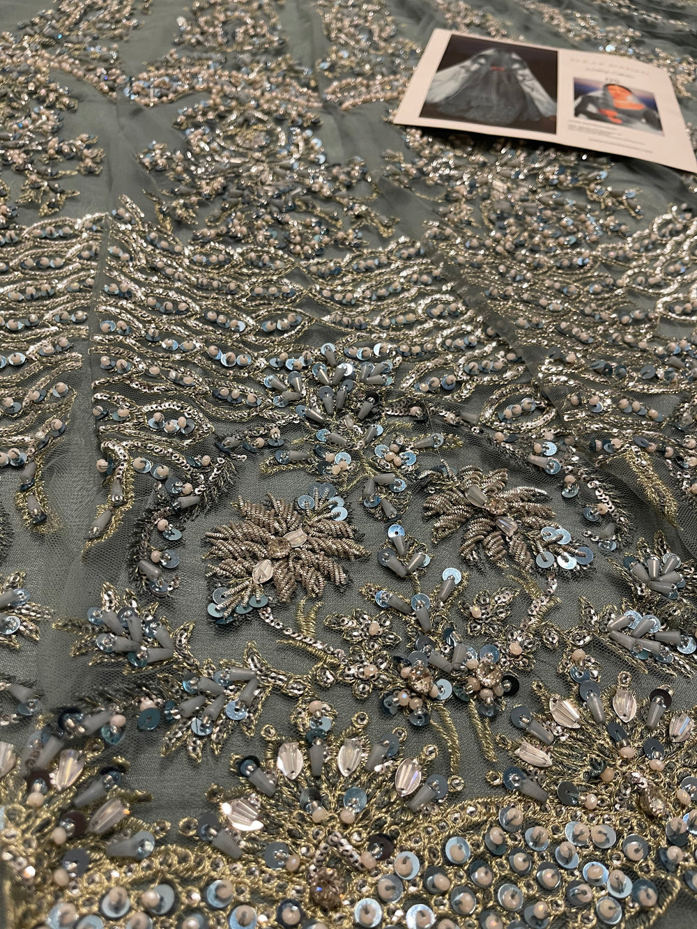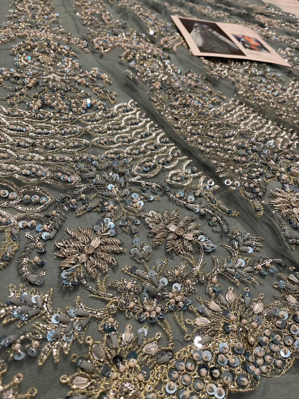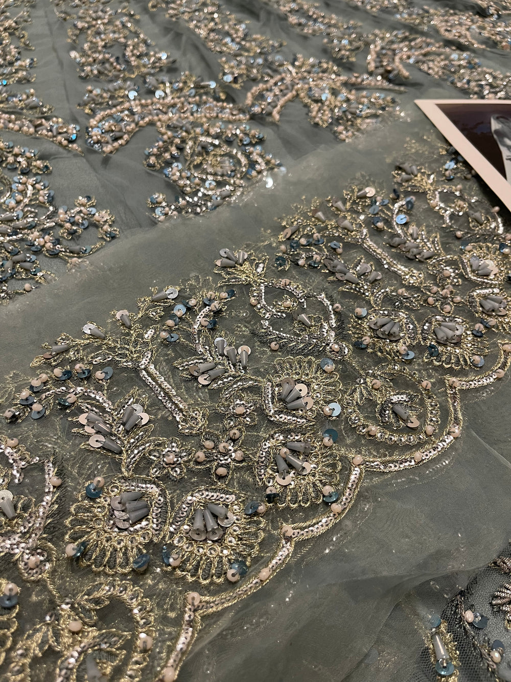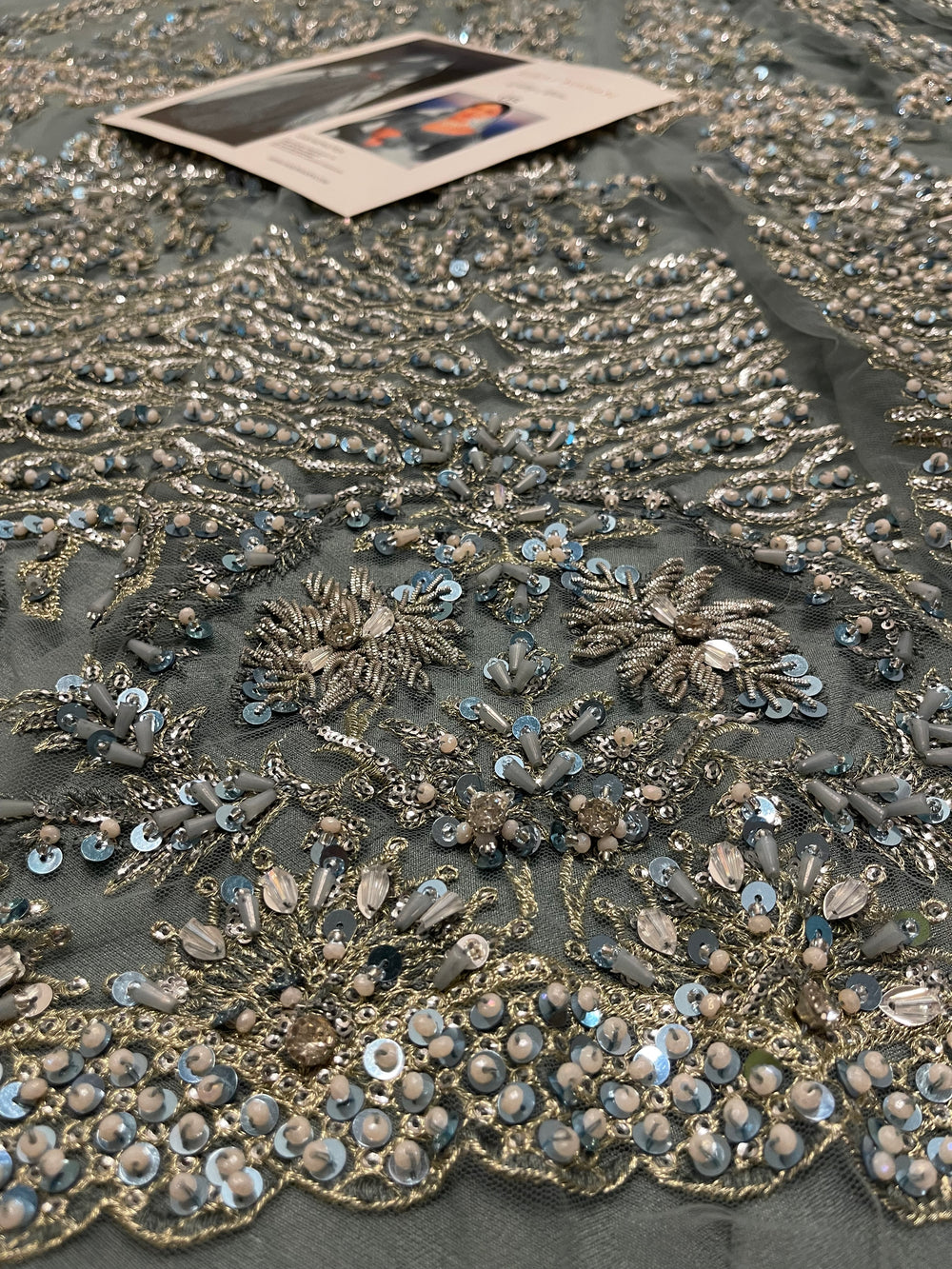A masterfully handcrafted ensemble inspired by the timeless elegance of Faraz Manan’s design philosophy. This bespoke piece is brought to life in a uniquely curated shade, featuring an intricate tapestry of floral and vine motifs. Every inch is adorned with delicate hand embroidery — shimmering sequins, pearls, crystal beads, and metallic threadwork — woven together to create a luxurious, ethereal finish. A true celebration of craftsmanship and couture, this outfit blends traditional artistry with modern refinement, designed for those who appreciate detail, elegance, and individuality.