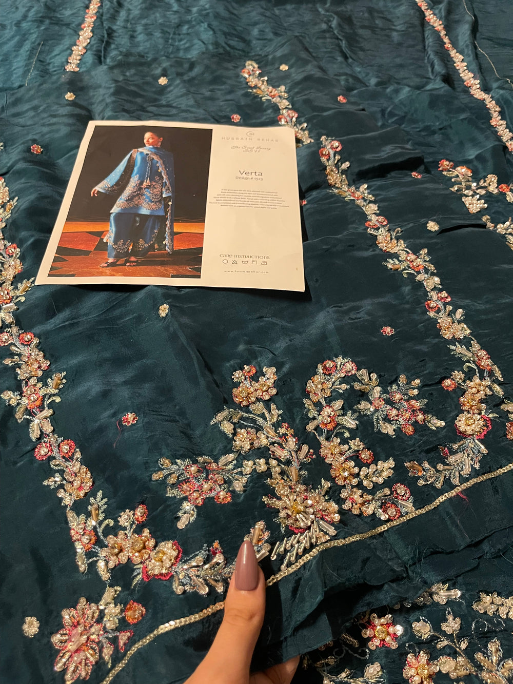 The Verta Ensemble reflects timeless sophistication with its refined silhouette and luxurious fabric. Intricate embellishments lend it a touch of artistry, while the fluid drape adds effortless grace. Paired with a beautifully detailed dupatta, Verta is a perfect balance of modern charm and classic elegance — an ensemble designed to leave a lasting impression.