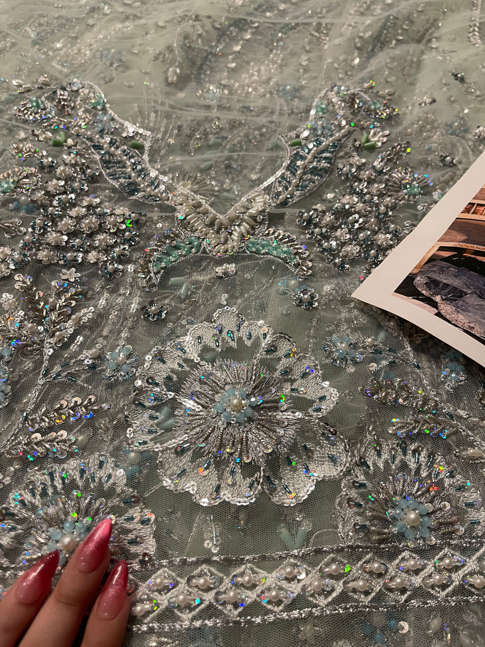 A luminous piece that glimmers with every glance, where delicate hues meet subtle sparkle. Its graceful detailing and fluid design create an aura of quiet sophistication — a timeless choice for those who love to shine effortlessly.