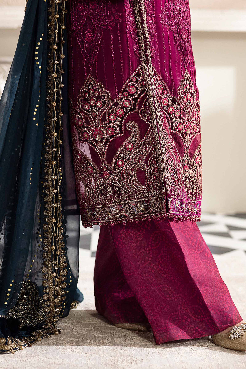 A striking magenta chiffon ensemble, brought to life with intricate embroidery, and hand embellishments. Paired with a flowy dupatta and graceful detailing, it’s a bold yet elegant choice for festive occasions.