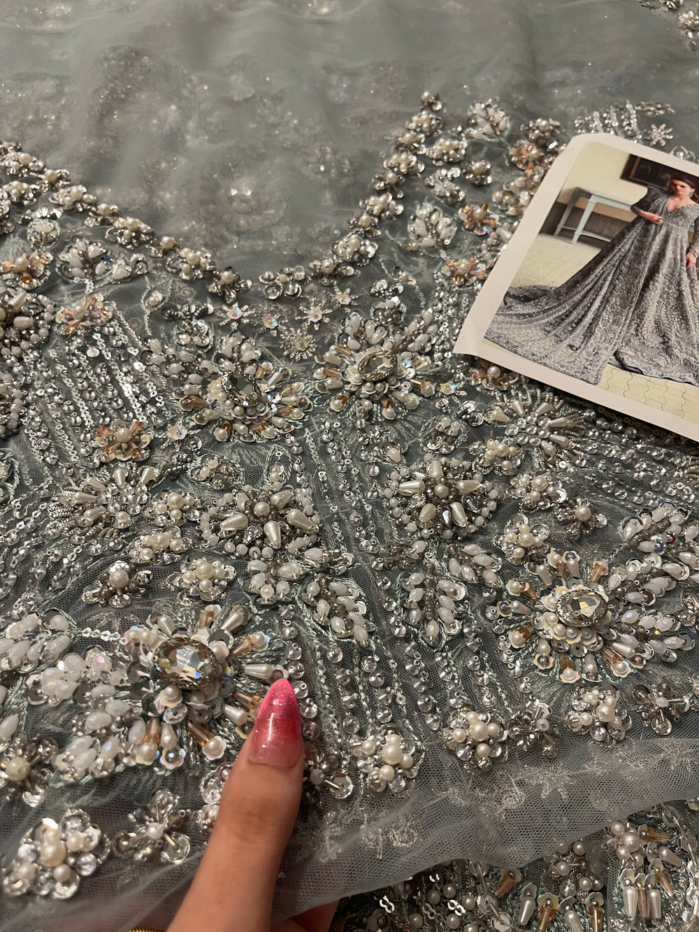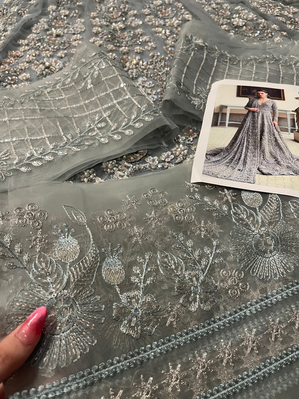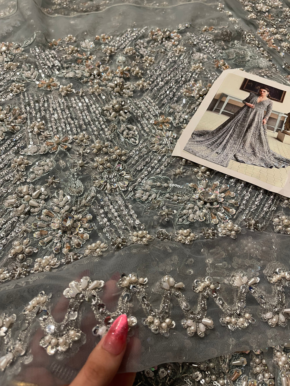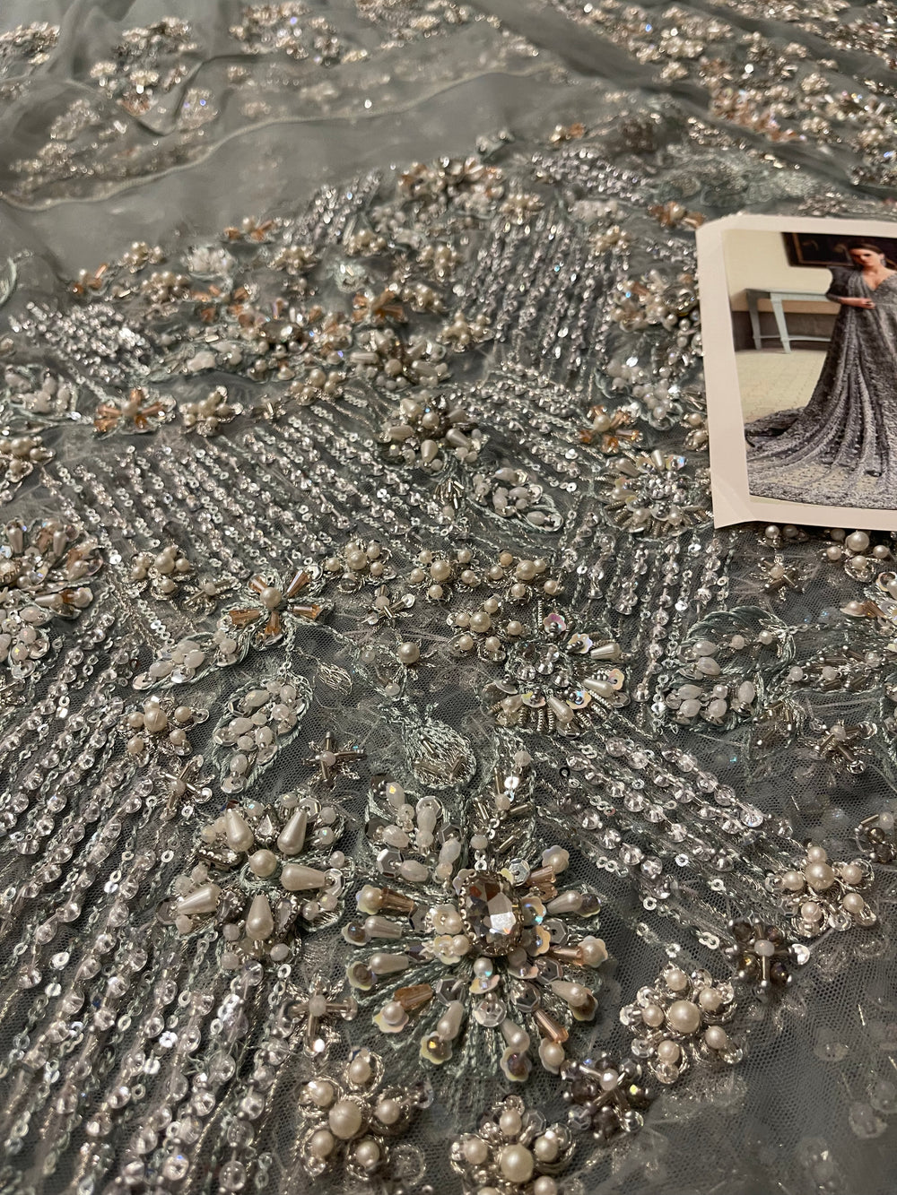 Novella – An enchanting gown that marries modern elegance with timeless artistry. Its fluid silhouette is adorned with intricate embellishments that weave together delicate motifs, creating a masterpiece of refinement. With its captivating shimmer and graceful fall, Novella embodies sophistication, making it a statement of understated grandeur.