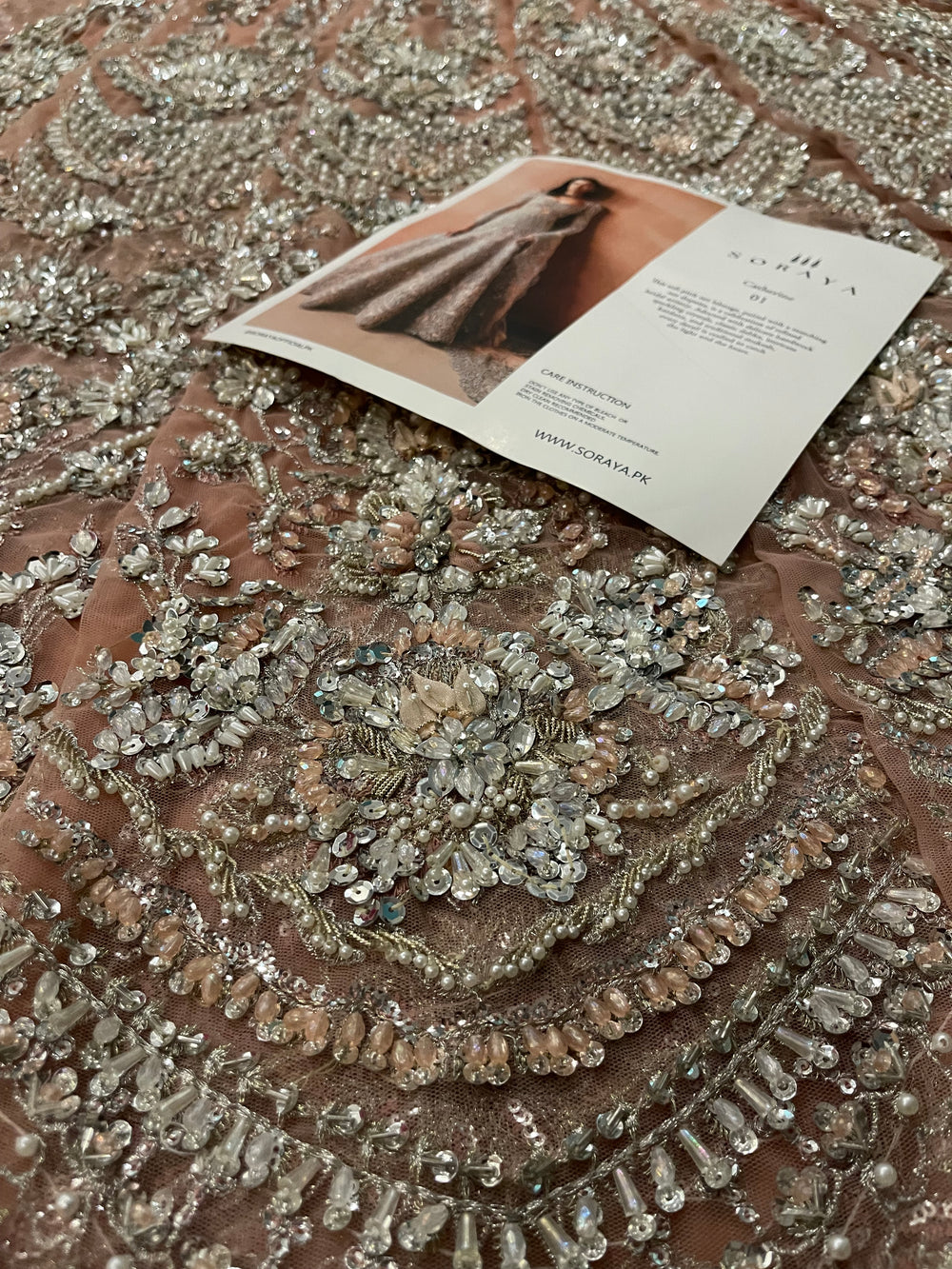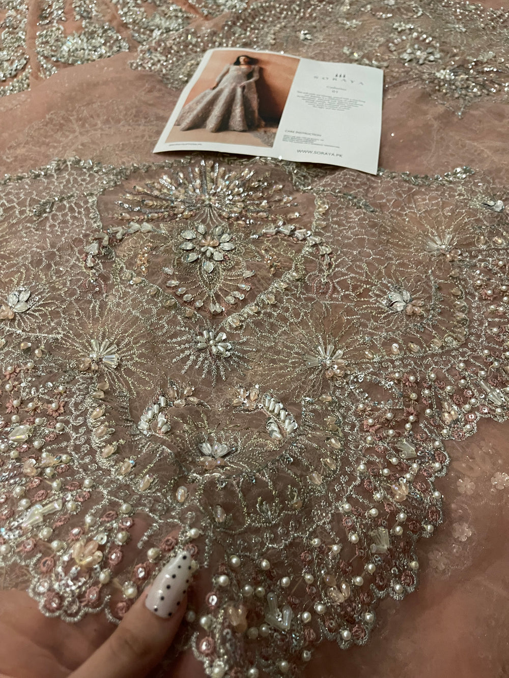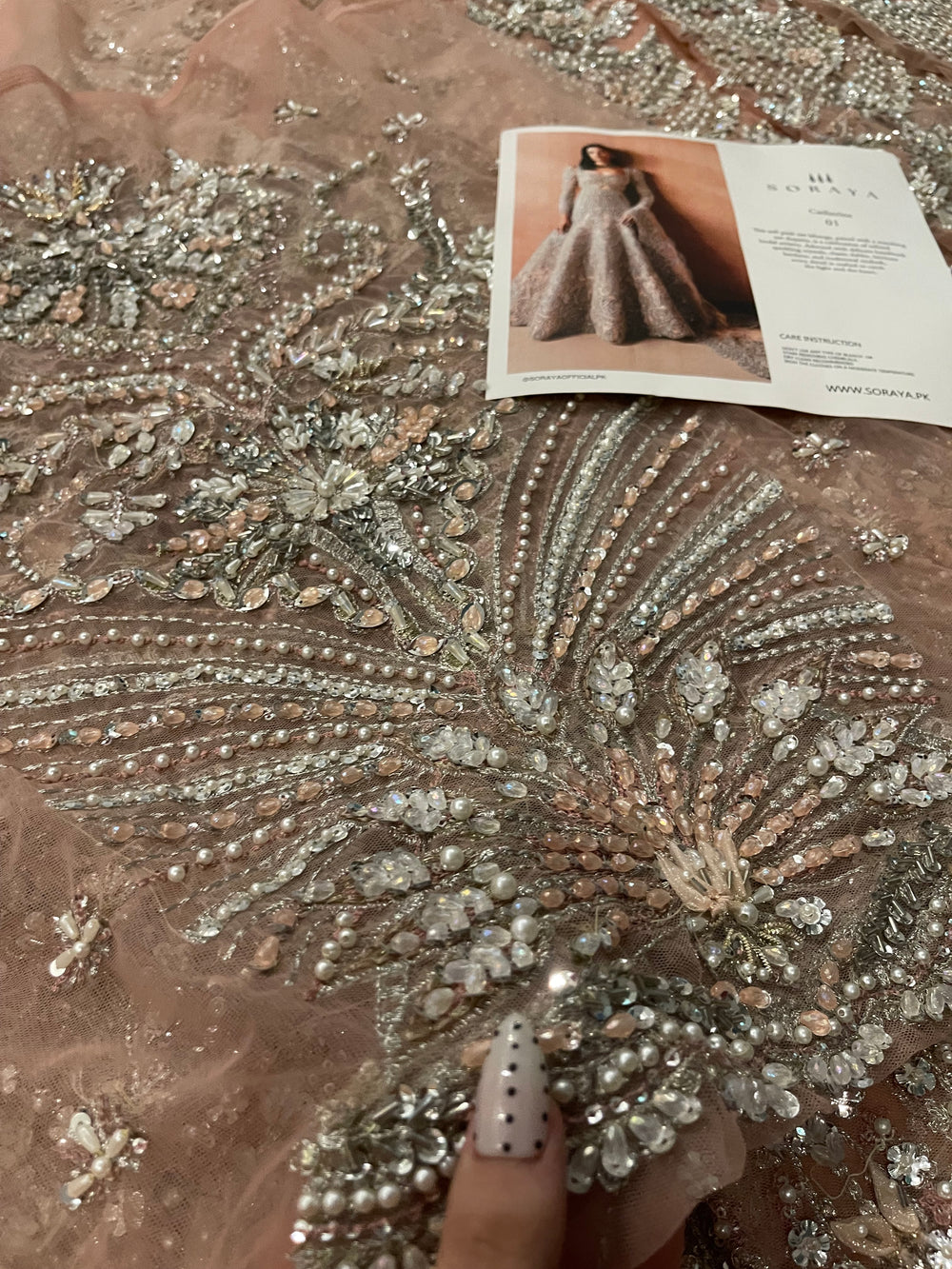 The Catherine ensemble whispers of timeless elegance — a delicate play of intricate handwork, luminous embellishments, and a silhouette that feels both regal and modern. With its soft champagne hues catching the light at every turn, it carries the charm of old-world romance while holding a statement of strength and grace. It’s the kind of look that doesn’t just enter a room — it lingers long after.